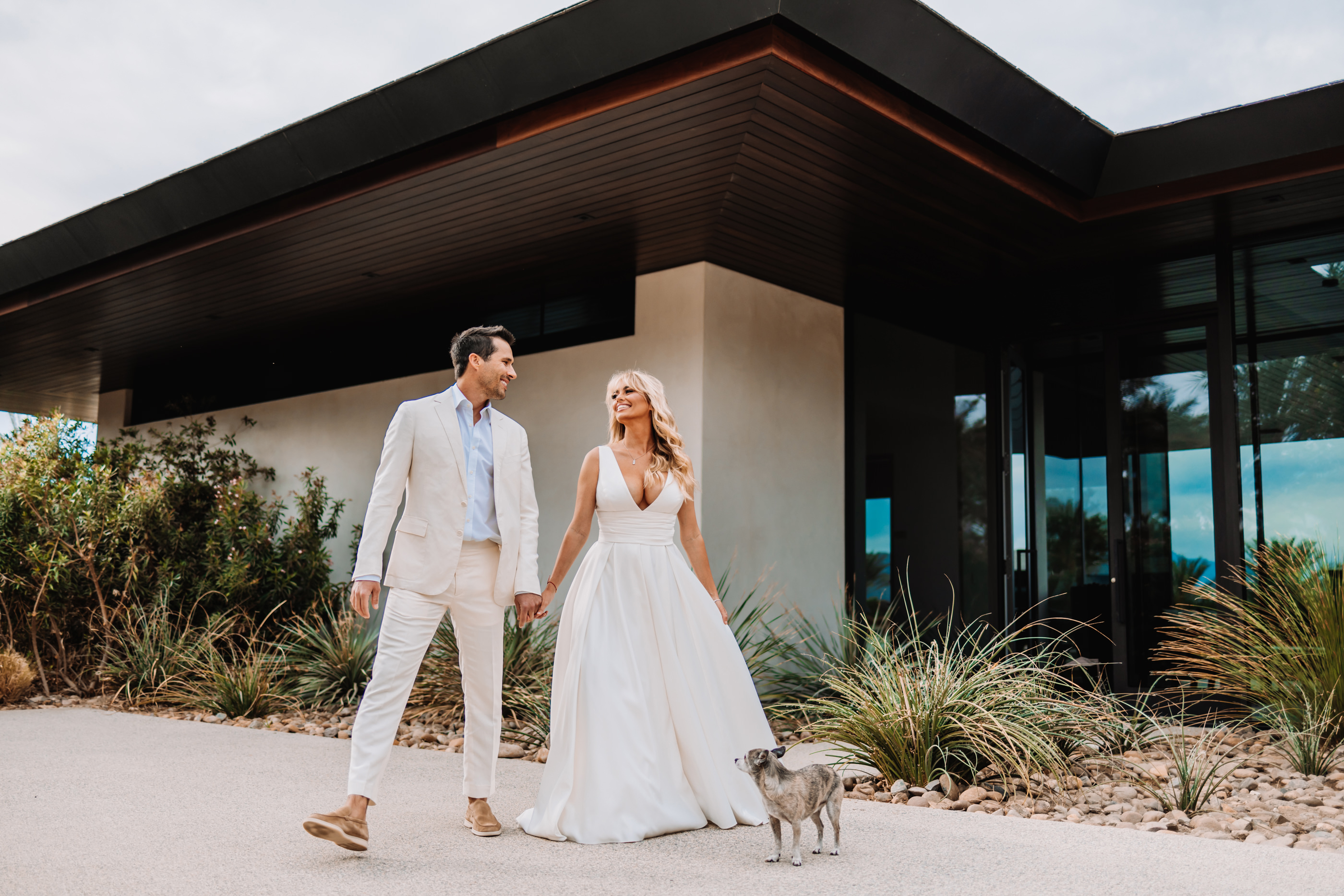 The Luxury Villa, Zenyara is best known as the epic Coachella Exclusive Parties!!! This upscale Wedding Venue makes you feel like your atop of the world! The white sand beach amongst the surrounding mountains and desert was a perfect touch for France and Jesse’s Tulum inspired Wedding Vibe! France and Jesse embraced the landscape and were so easy to communicate with as they trusted me with some of the least obvious backdrops and direction. It was important to the couple that I work quickly and thoroughly so they could enjoy their gust on their special day, and thus I found myself following my festival heart posing them against the European design with a splash of that Palm Springs elegance! Here are a handful of favorites for France and Jesse’s special Wedding Day!