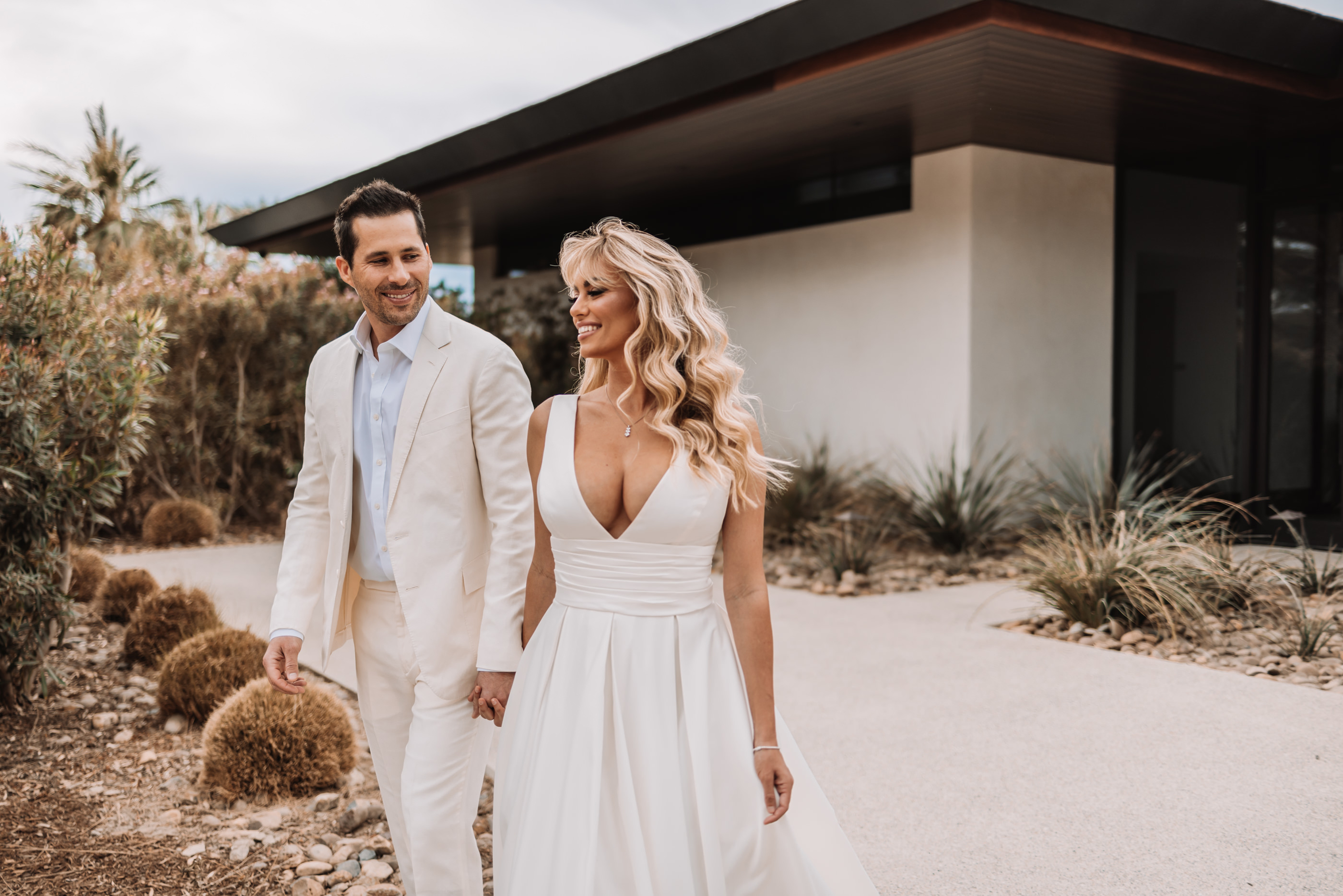 The Luxury Villa, Zenyara is best known as the epic Coachella Exclusive Parties!!! This upscale Wedding Venue makes you feel like your atop of the world! The white sand beach amongst the surrounding mountains and desert was a perfect touch for France and Jesse’s Tulum inspired Wedding Vibe! France and Jesse embraced the landscape and were so easy to communicate with as they trusted me with some of the least obvious backdrops and direction. It was important to the couple that I work quickly and thoroughly so they could enjoy their gust on their special day, and thus I found myself following my festival heart posing them against the European design with a splash of that Palm Springs elegance! Here are a handful of favorites for France and Jesse’s special Wedding Day!