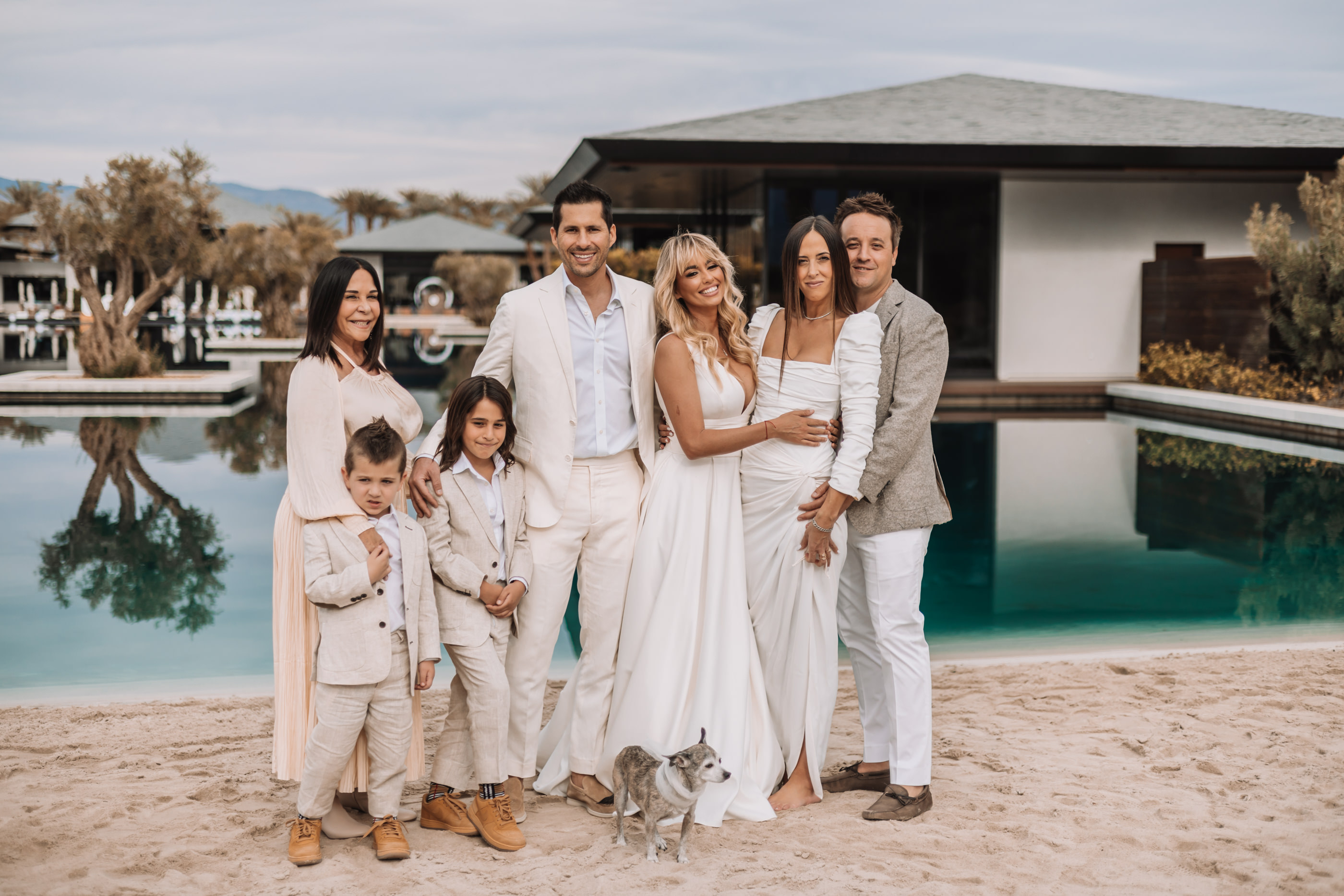 The Luxury Villa, Zenyara is best known as the epic Coachella Exclusive Parties!!! This upscale Wedding Venue makes you feel like your atop of the world! The white sand beach amongst the surrounding mountains and desert was a perfect touch for France and Jesse’s Tulum inspired Wedding Vibe! France and Jesse embraced the landscape and were so easy to communicate with as they trusted me with some of the least obvious backdrops and direction. It was important to the couple that I work quickly and thoroughly so they could enjoy their gust on their special day, and thus I found myself following my festival heart posing them against the European design with a splash of that Palm Springs elegance! Here are a handful of favorites for France and Jesse’s special Wedding Day!