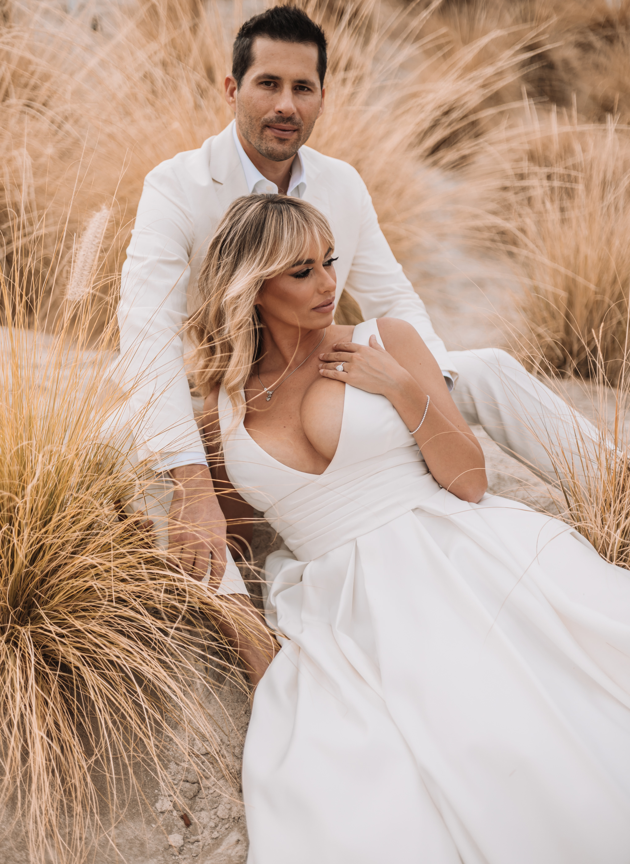 The Luxury Villa, Zenyara is best known as the epic Coachella Exclusive Parties!!! This upscale Wedding Venue makes you feel like your atop of the world! The white sand beach amongst the surrounding mountains and desert was a perfect touch for France and Jesse’s Tulum inspired Wedding Vibe! France and Jesse embraced the landscape and were so easy to communicate with as they trusted me with some of the least obvious backdrops and direction. It was important to the couple that I work quickly and thoroughly so they could enjoy their gust on their special day, and thus I found myself following my festival heart posing them against the European design with a splash of that Palm Springs elegance! Here are a handful of favorites for France and Jesse’s special Wedding Day!