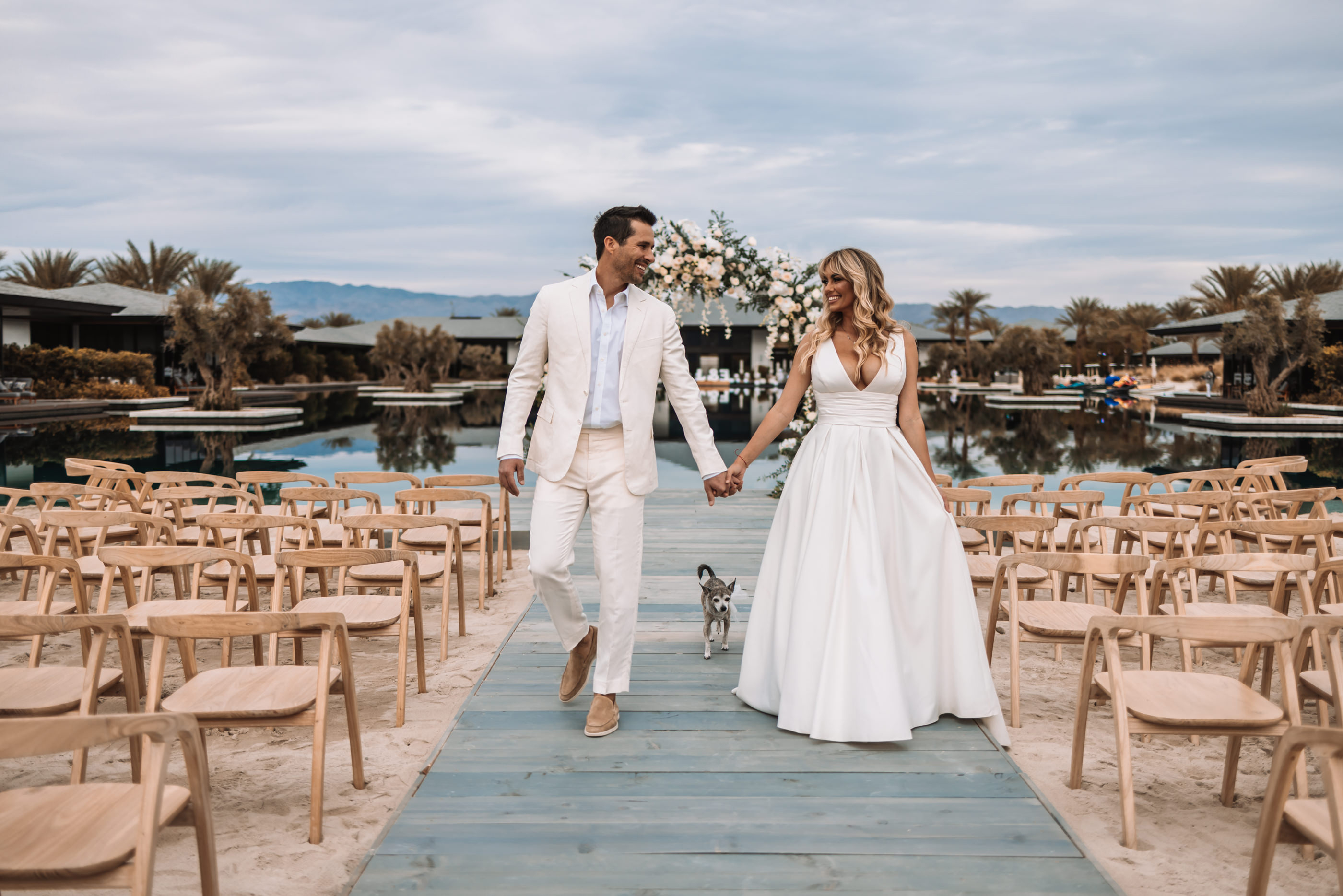 The Luxury Villa, Zenyara is best known as the epic Coachella Exclusive Parties!!! This upscale Wedding Venue makes you feel like your atop of the world! The white sand beach amongst the surrounding mountains and desert was a perfect touch for France and Jesse’s Tulum inspired Wedding Vibe! France and Jesse embraced the landscape and were so easy to communicate with as they trusted me with some of the least obvious backdrops and direction. It was important to the couple that I work quickly and thoroughly so they could enjoy their gust on their special day, and thus I found myself following my festival heart posing them against the European design with a splash of that Palm Springs elegance! Here are a handful of favorites for France and Jesse’s special Wedding Day!