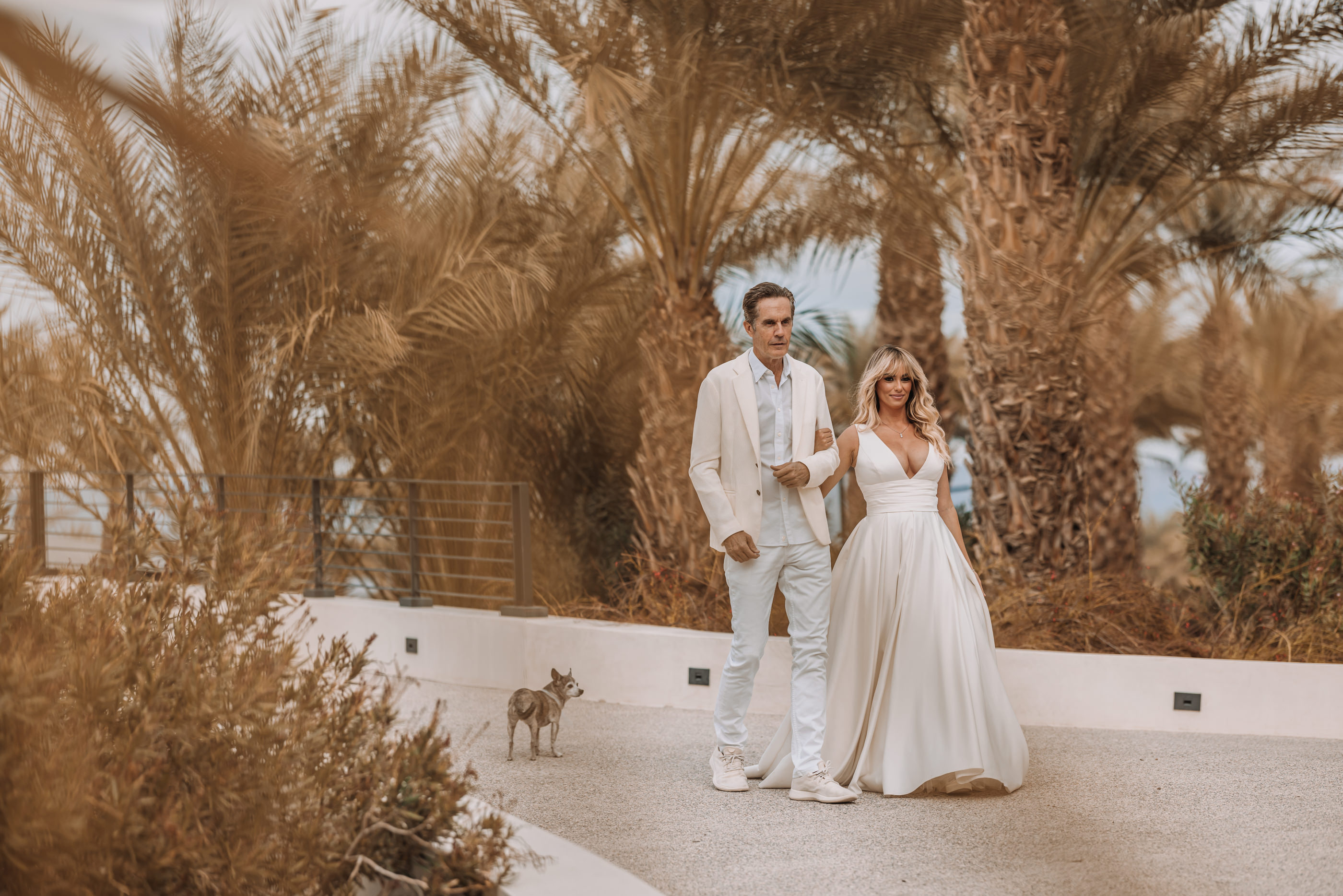 The Luxury Villa, Zenyara is best known as the epic Coachella Exclusive Parties!!! This upscale Wedding Venue makes you feel like your atop of the world! The white sand beach amongst the surrounding mountains and desert was a perfect touch for France and Jesse’s Tulum inspired Wedding Vibe! France and Jesse embraced the landscape and were so easy to communicate with as they trusted me with some of the least obvious backdrops and direction. It was important to the couple that I work quickly and thoroughly so they could enjoy their gust on their special day, and thus I found myself following my festival heart posing them against the European design with a splash of that Palm Springs elegance! Here are a handful of favorites for France and Jesse’s special Wedding Day!