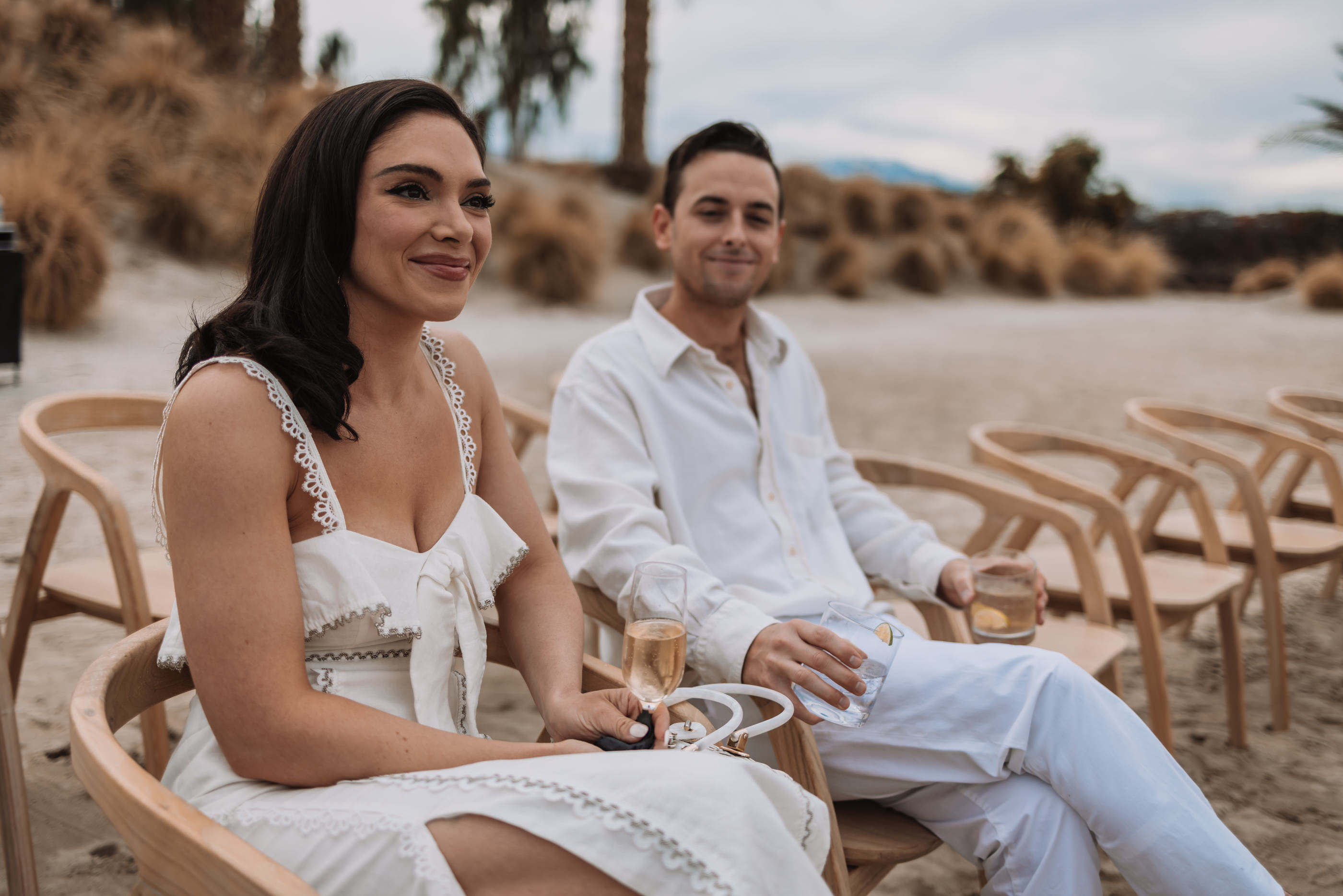 The Luxury Villa, Zenyara is best known as the epic Coachella Exclusive Parties!!! This upscale Wedding Venue makes you feel like your atop of the world! The white sand beach amongst the surrounding mountains and desert was a perfect touch for France and Jesse’s Tulum inspired Wedding Vibe! France and Jesse embraced the landscape and were so easy to communicate with as they trusted me with some of the least obvious backdrops and direction. It was important to the couple that I work quickly and thoroughly so they could enjoy their gust on their special day, and thus I found myself following my festival heart posing them against the European design with a splash of that Palm Springs elegance! Here are a handful of favorites for France and Jesse’s special Wedding Day!