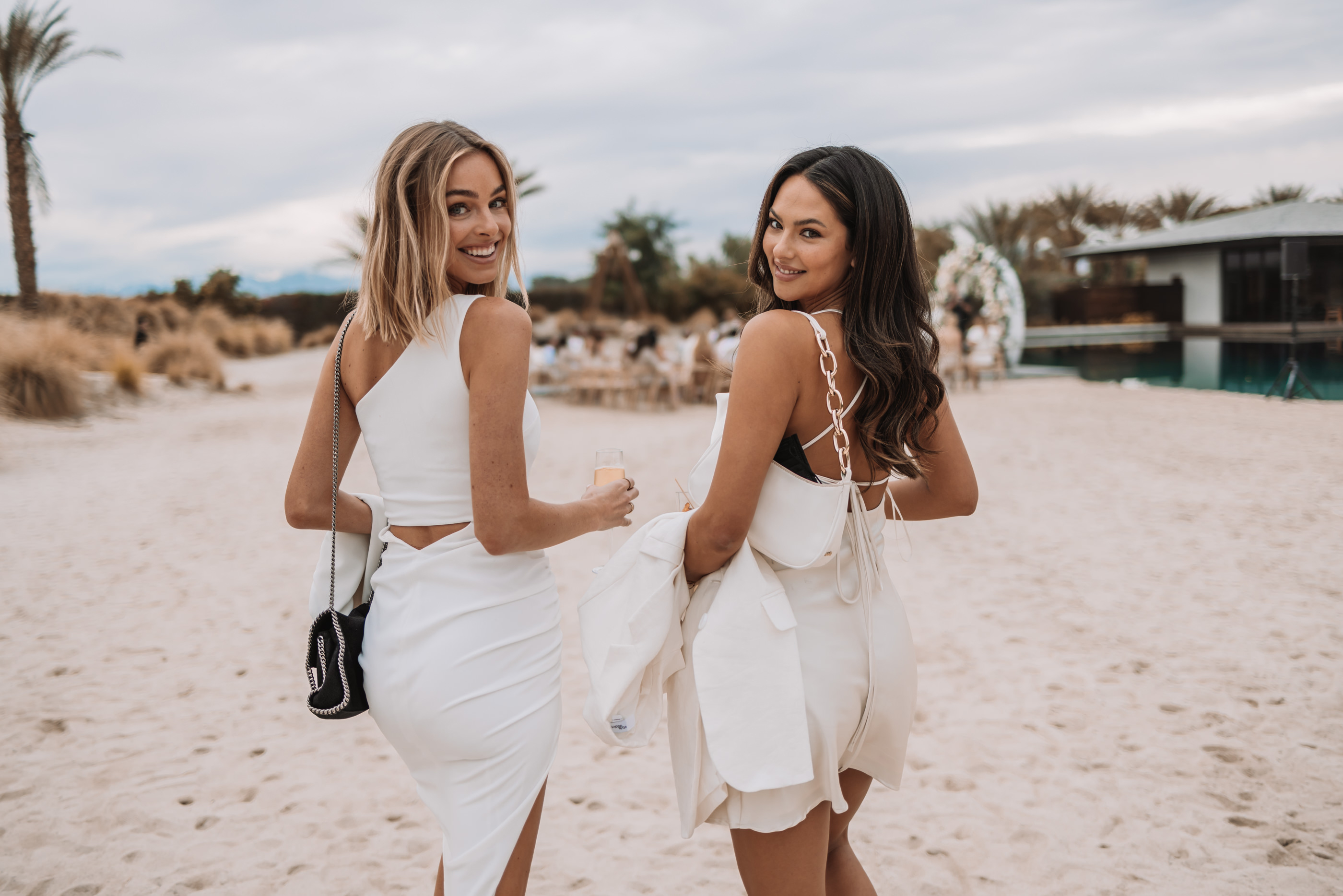 The Luxury Villa, Zenyara is best known as the epic Coachella Exclusive Parties!!! This upscale Wedding Venue makes you feel like your atop of the world! The white sand beach amongst the surrounding mountains and desert was a perfect touch for France and Jesse’s Tulum inspired Wedding Vibe! France and Jesse embraced the landscape and were so easy to communicate with as they trusted me with some of the least obvious backdrops and direction. It was important to the couple that I work quickly and thoroughly so they could enjoy their gust on their special day, and thus I found myself following my festival heart posing them against the European design with a splash of that Palm Springs elegance! Here are a handful of favorites for France and Jesse’s special Wedding Day!