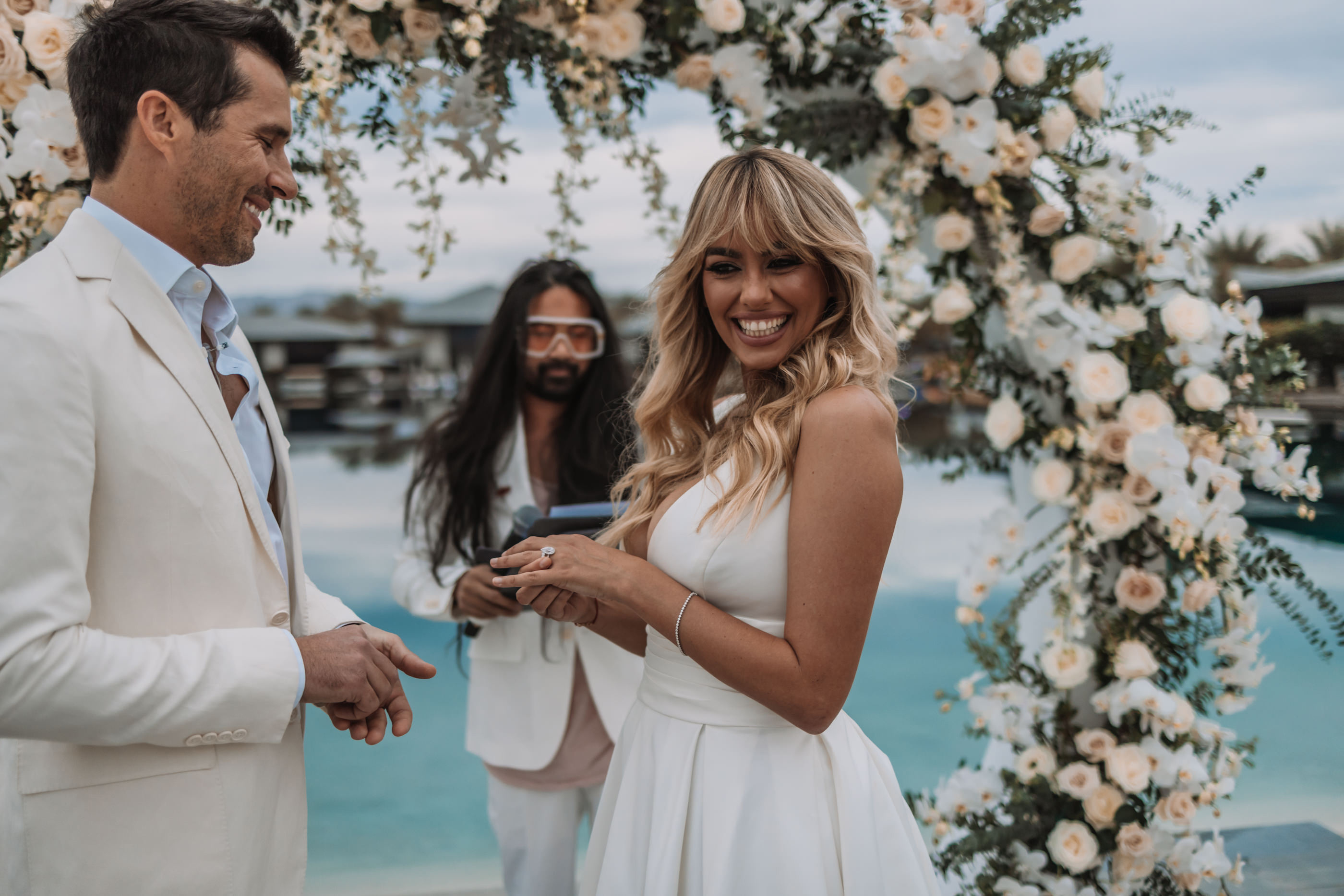 The Luxury Villa, Zenyara is best known as the epic Coachella Exclusive Parties!!! This upscale Wedding Venue makes you feel like your atop of the world! The white sand beach amongst the surrounding mountains and desert was a perfect touch for France and Jesse’s Tulum inspired Wedding Vibe! France and Jesse embraced the landscape and were so easy to communicate with as they trusted me with some of the least obvious backdrops and direction. It was important to the couple that I work quickly and thoroughly so they could enjoy their gust on their special day, and thus I found myself following my festival heart posing them against the European design with a splash of that Palm Springs elegance! Here are a handful of favorites for France and Jesse’s special Wedding Day!