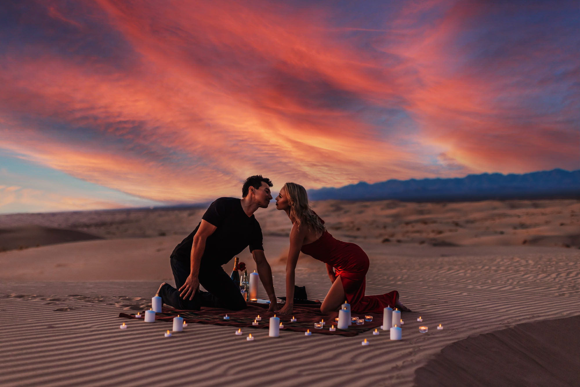 A connecting flight literary brought this lovey couple together and ultimately lead to the romantic love story! When I hear the story of the stopover and how it was love at first sight my imagination sped up. I could not help it, I skipped in high gear and was like we must go catch the next flight outa town for your Engagement Session!!! You best believe Abbey and Brandon were on board and we did not stop there, we flew to the San Dunes for a romantic sunset! The Engagement Photography Session in San Diego we pulled off was outa the desert sky!
